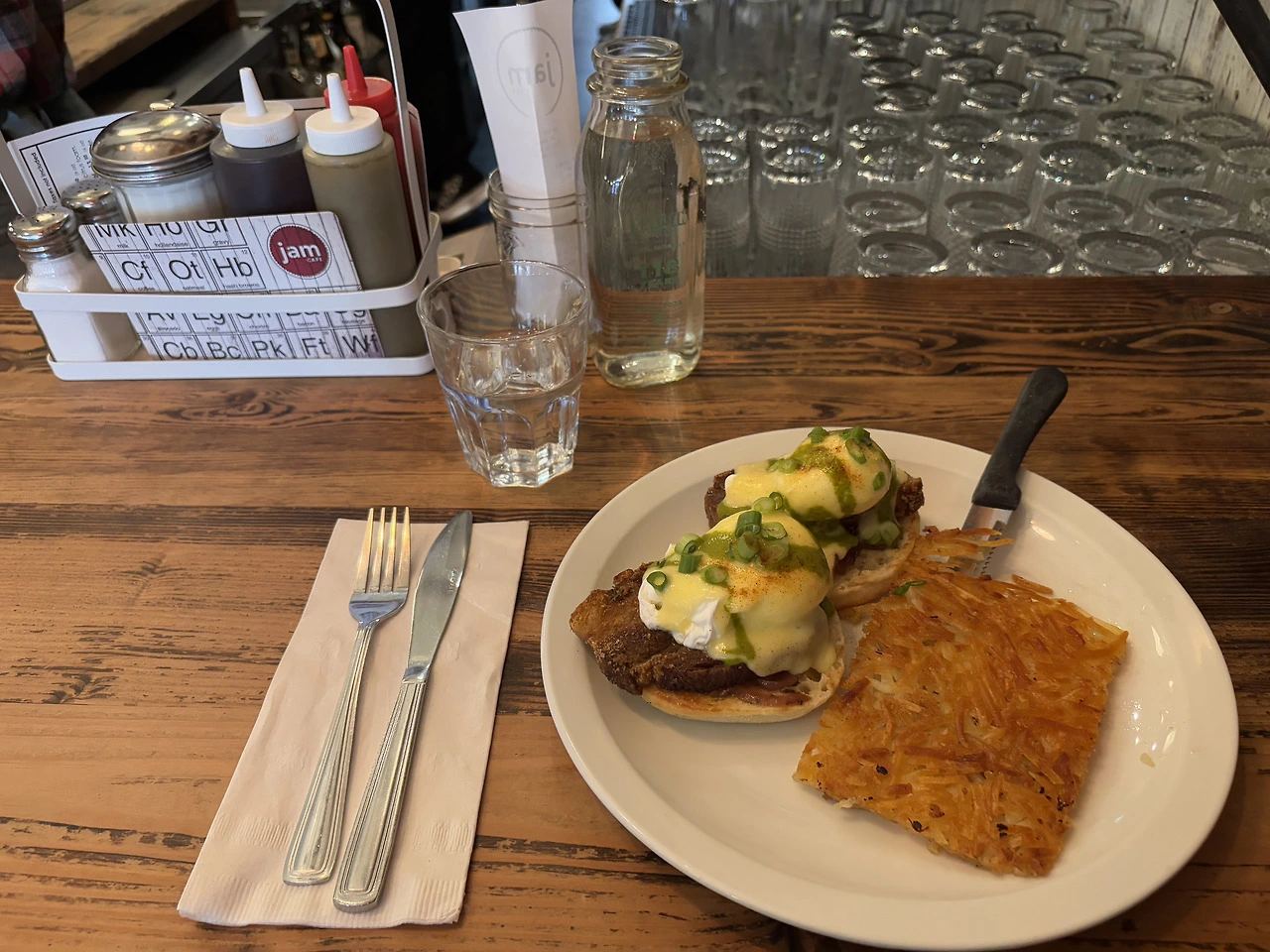 친구가 꼭 가보라고 했던 브런치 카페에 왔다. 밴쿠버에도 지점이 있는 곳, 돼지고기 에그 베네딕트를 주문했다. 두툼하고 쫀득한 삼겹살이 맛있었다. 하지만 해쉬브라운이 짰다. 쌈과 쌈장과 흰밥과 김치가 그리운 맛이다.