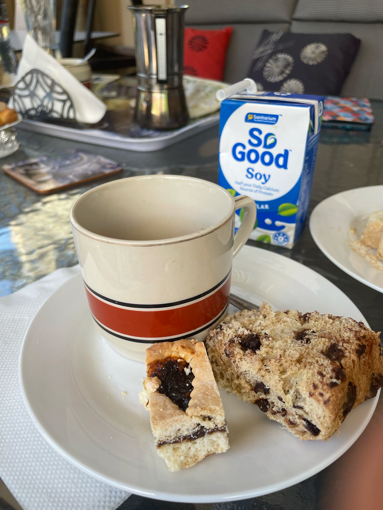 홈스테이에 오랜 경험이 있는 티나 가족들이 나를 반갑게 맞아주었다. 이탈리아 출신 티나의 어머니의 영향인지 모카포트로 티타임을 가지고 있었다. 나도 커피를 조금 마셔보았는데 '나는 역시 에스프레소 기반 라떼가 좋아...' 각종 이국적인 과자들. 내 입을 딱 사로잡는 맛은 없었다. 하지만 집에 마당이 있어서 휴식할 수 있는 공간이 있다는 게 좋아 보였다. 조금씩 다른 곳에 있는 내가 실감이 났다.