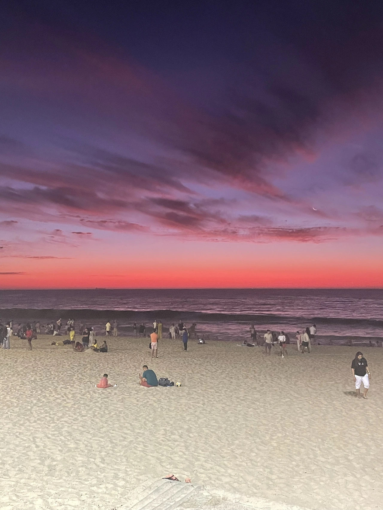 하늘이 붉게 변하고 분홍색, 보락색을 띄기도 했다. 해가 거의 넘어갈 때쯤 다시 빨갛게 물드며 캄캄해졌다. 보통은 해가 금방 진다고 생각했는데 이 날은 수평선 너머로 해가 오래 머문 느낌이다.