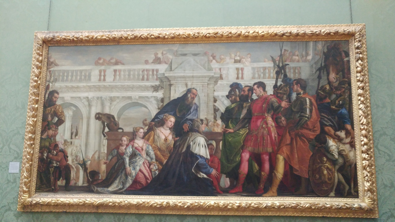 원래 이 작품은 Veronese가 베네치아의 한 개인 궁전에 결혼식 축하용으로 그린 것이라고 한다. 어쩐지 배경에 그려진 대리석 건물이 베네치아에 있는 건물들과 유사하다. National Gallery에서 편찬한 <A Quick Visit>이란 책에 보면 작품 속 주요인물(알렉산더, 왼쪽의 친구, 다리우스 어머니 등)들은 후원자 가족의 얼굴을 그린 걸로 추정된다고 한다. 화가가 작품에 후원자의 얼굴을 그려주는 서비스를 제공하면 낸 돈이 전혀 아깝지 않겠다.