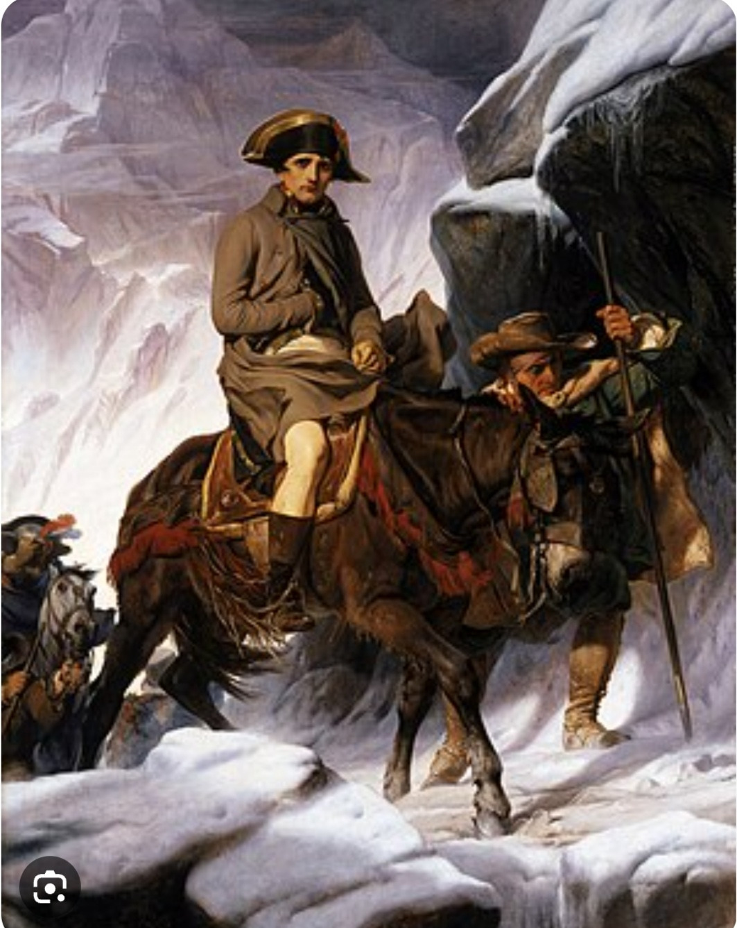 (좌) 다비드 <알스프를 넘는 나폴레옹>, (우) 폴 들라로슈 <알프스를 넘는 나폴레옹>.