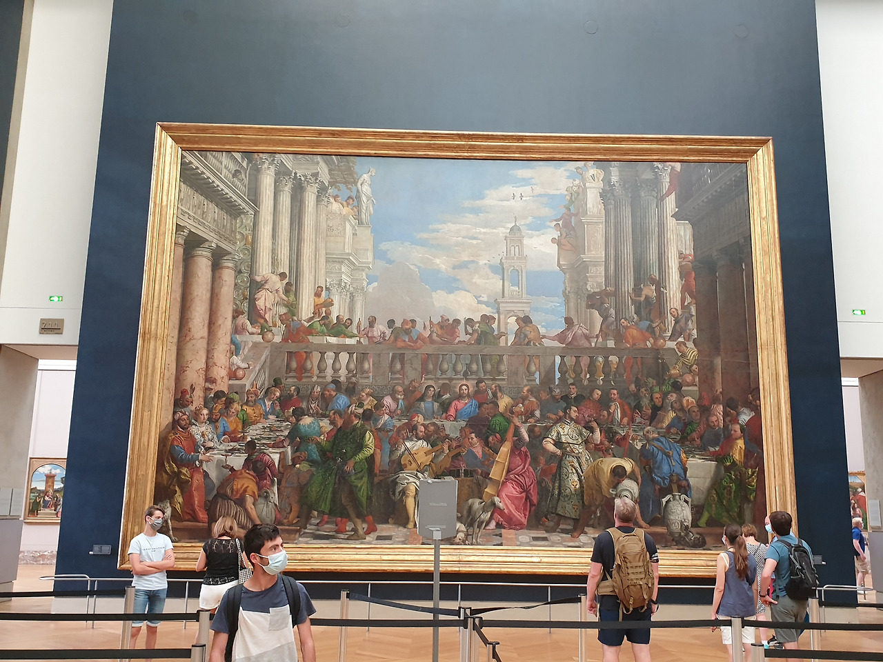 <가나안의 혼인잔치>는 일단 사이즈에서부터 50%는 먹고 들어간다(9.94m*6.77m). 한쪽 벽면 전체를 채울 정도로 크다. 루브르 박물관에 소장된 회화 작품 중 가장 크다고 한다. 이 큰 그림을 균형감 있게 그린 자체만으로도 화가를 인정해줘야 한다.
