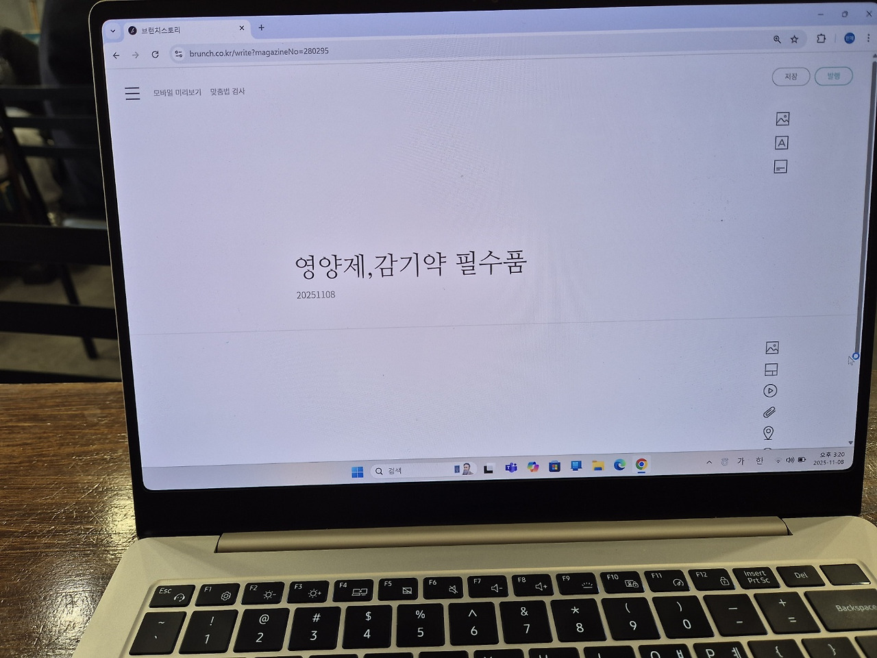 영양제랑 감기약을 항상 가지고 다니게 될 줄 몰랐다. 그저 어쩌다 찾는 보조품이라고만 생각했는데 이제는 회사에도 가져다 두고 가방에도 넣고 다니며 집에는 자주 찾아지는 물건이 되어버렸다.