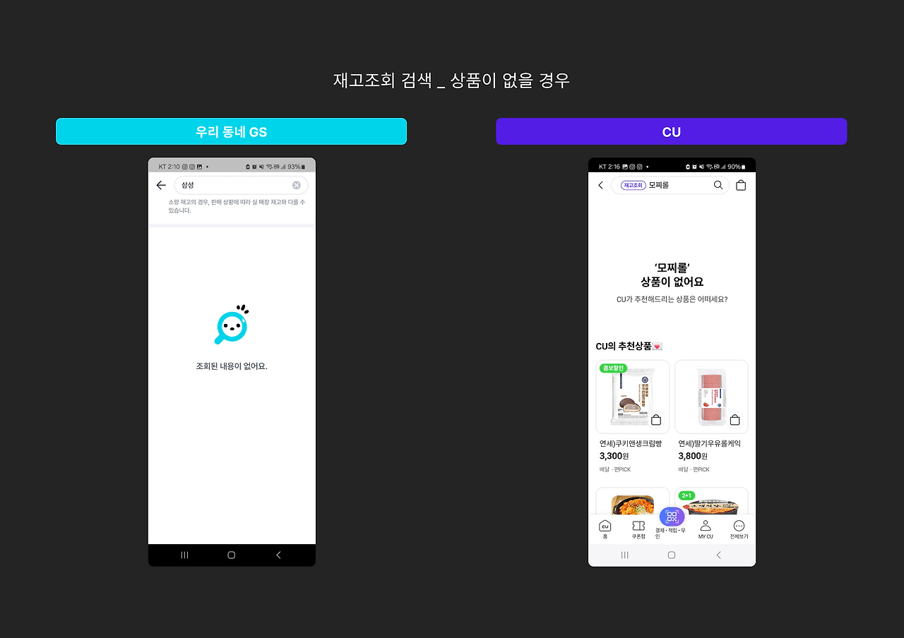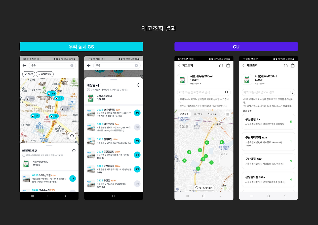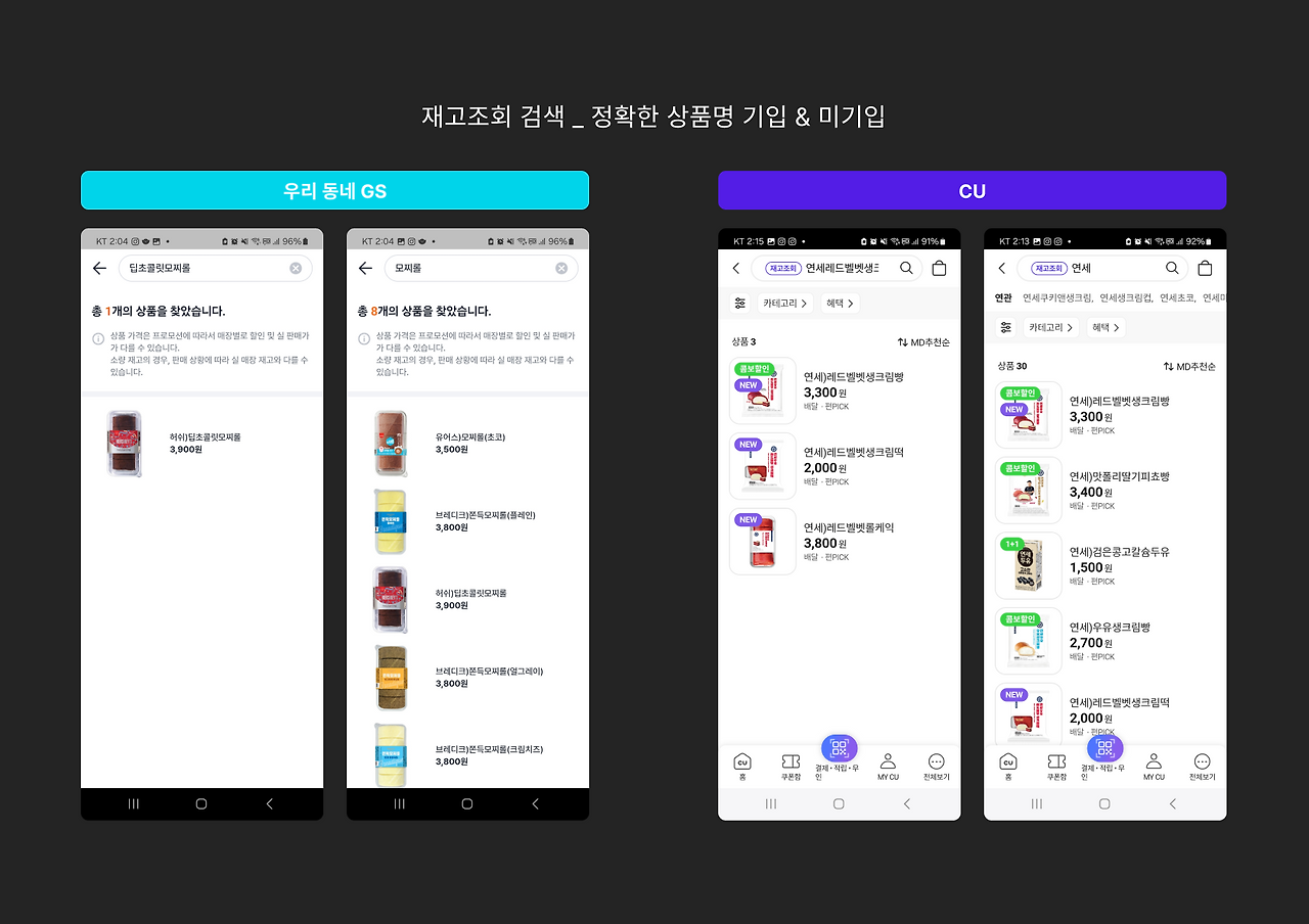 저는 서비스를 사용하면서 각 편의점 앱 간 재고 조회 플로우의 차이점을 체감하게 되었고 이 차이가 사용자 경험에 미치는 영향을 고민하게 되었습니다.