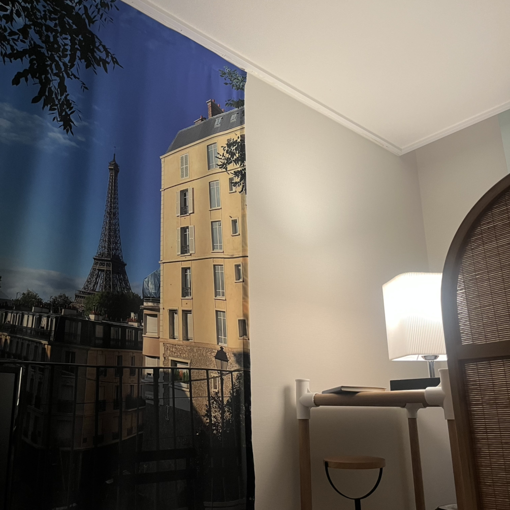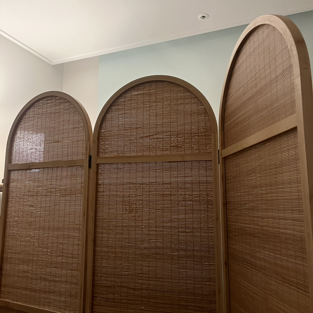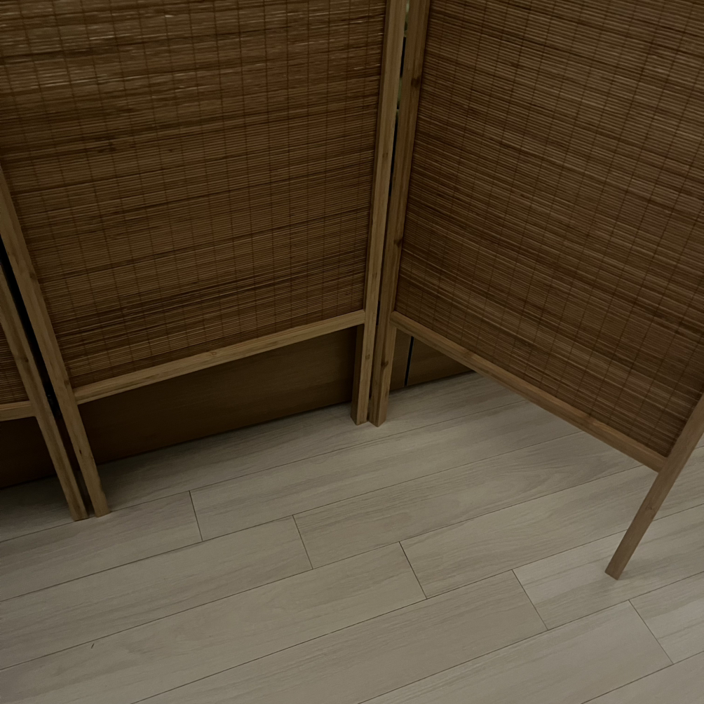 Baliness 파티션. 침대와 책상을 분리해주고 있다. 책상에 앉아있을 때 햇빛을 가려준다. 두가지의 역할을 수행중. 방 중앙.