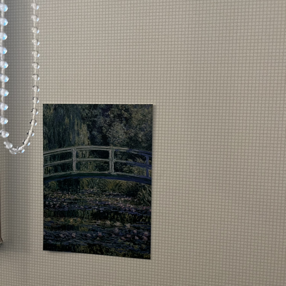 모네 전시회에서 산 엽서. 뒤에는 직접 쓴 시가 적혀있다(비밀). 침대 맡.