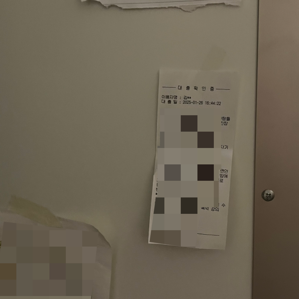 벽장 문 안쪽의 대출확인증. 영수증이 마음에 들어서 이번에 붙여보았다. 벽장 안.