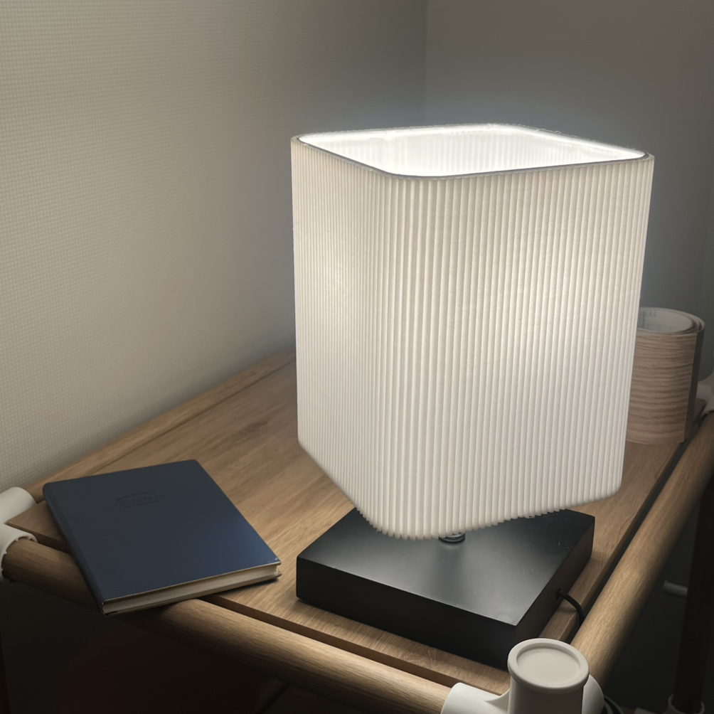 침대와 책상을 모두 비춰주는 조명, 다이어리. 책을 읽기엔 약간 어둡다. 다용도선반 맨위칸, 방구석.