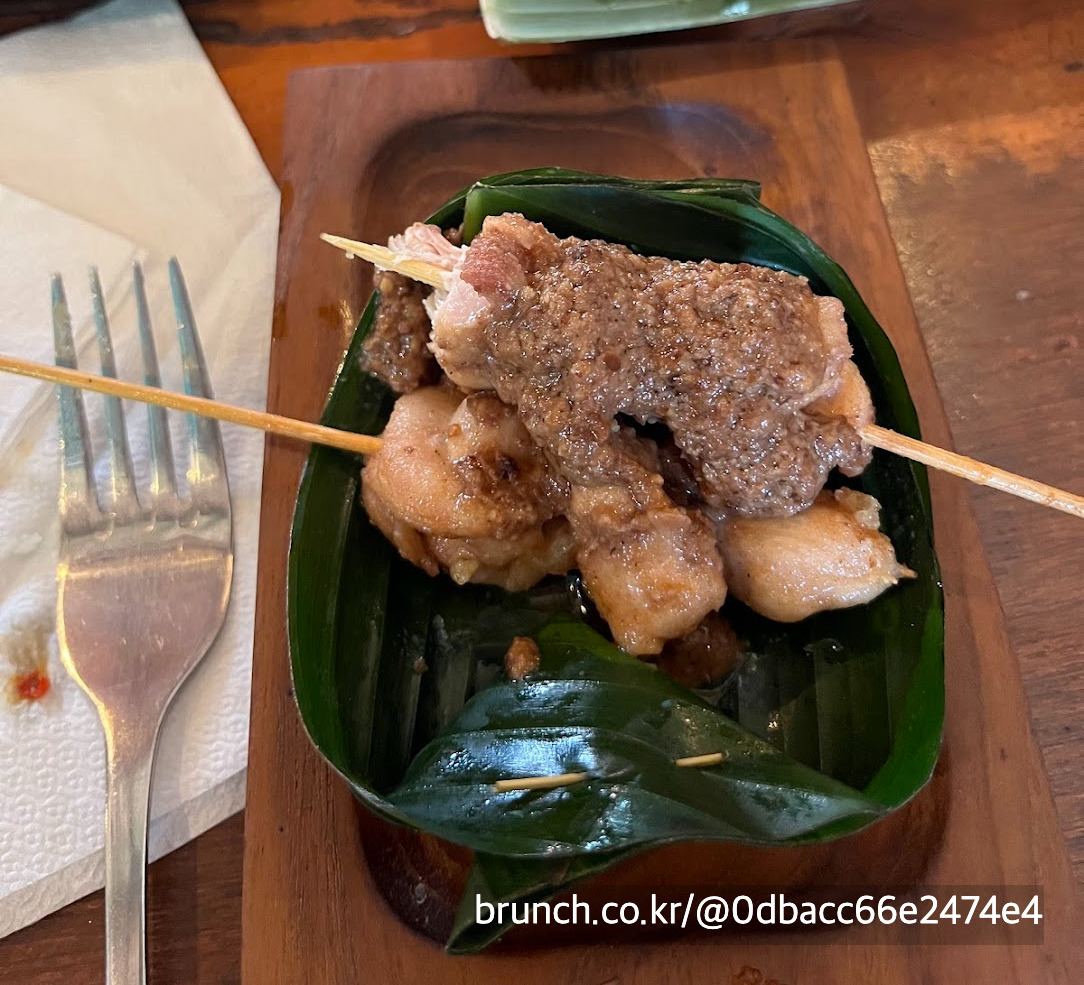 땅콩소스 발린 나의 첫 사테!!! 맥주 없어요?