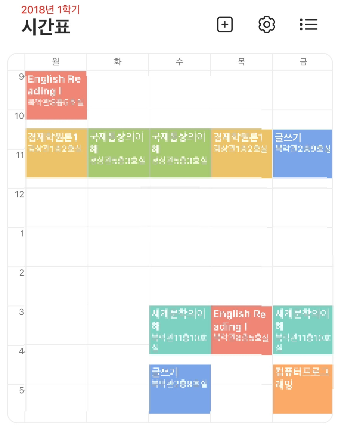수강신청을 처음 해보고, 내가 짜 놓은 시간표대로 움직이는 구조가 신선했다. 그 당시에 수강신청에 대한 '꿀팁'도 모르던 나의 목표는 오로지 '공강 만들기'였다. 그러나 처참히 실패하고 말았다...