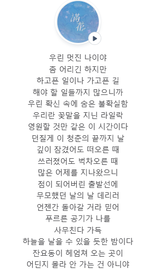 P.S. 내가 하고 싶은 말은 20대의 사랑이란 쉽지 않다는 것이다. 가수 이무진의 노래 '청춘만화'처럼, 누구나 거쳐가는 청춘이라는 시기는 화려하고 희망에 찬 미래를 그리면서도 공허함과, 불안함, 사랑이 공존한다. 이러한 경험들이 소용돌이치듯 오는 시기 속에서 우리는 가치관을 형성하고 배워가며 성장한다. 흘려 보낼 인연들은 연연하지 않고, 나에게 소중한 인연들은 간직하며 20대를 보내고 싶다.