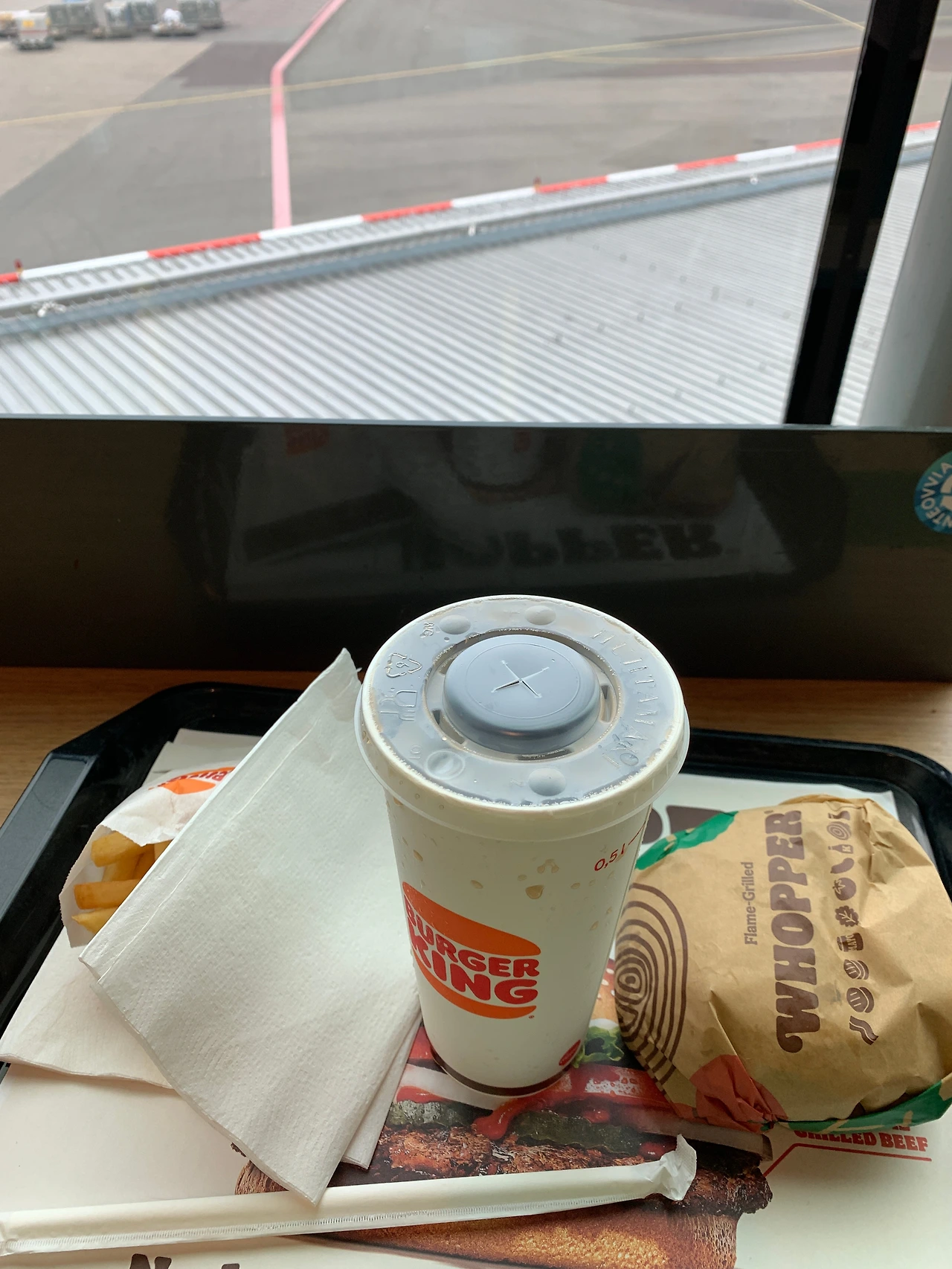 딱 공항검색대를 통과하고나니, 긴장도 풀리면서 배고프다는 생각이 머리를 지배했다. 그래서 공항 최고의 메뉴인 햄버거를 먹으러 버거킹으로 향했다. 버거킹 와퍼 세트를 하나 들고서는 비행기들이 드나드는 잘 보이는 게이트 앞 자리에 앉아서 비행기들이 지나다니는 것을 구경했다. 이걸 보고 있으니 세상이 참 넓다는 생각이 들었다. 세상은 너무나도 넓지만, 그걸 보는 내 시각은 너무나도 좁다는 생각이 들면서, 앞으로 더 많은 걸 경험해봐야지 싶었다.