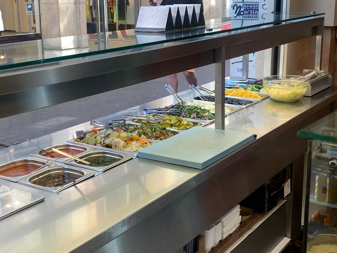 그러고 나면 이렇게 샐러드 바 형식에서 자유롭게 재료를 넣어서 즐길 수 있게 되어있다. 그 중에서도 요거트가 들어간 딜 소스가 엄청 맛있었다. 대학교때 러시아 여행을 하면서 딜이 들어간 샐러드를 매일 먹어서 그 이후로 딜을 정말 싫어하게 되었는데, 여기서 완전 딜 싫어함을 극복하게 되었다! 한입 먹자마자 감탄사가 자동으로 나왔다.