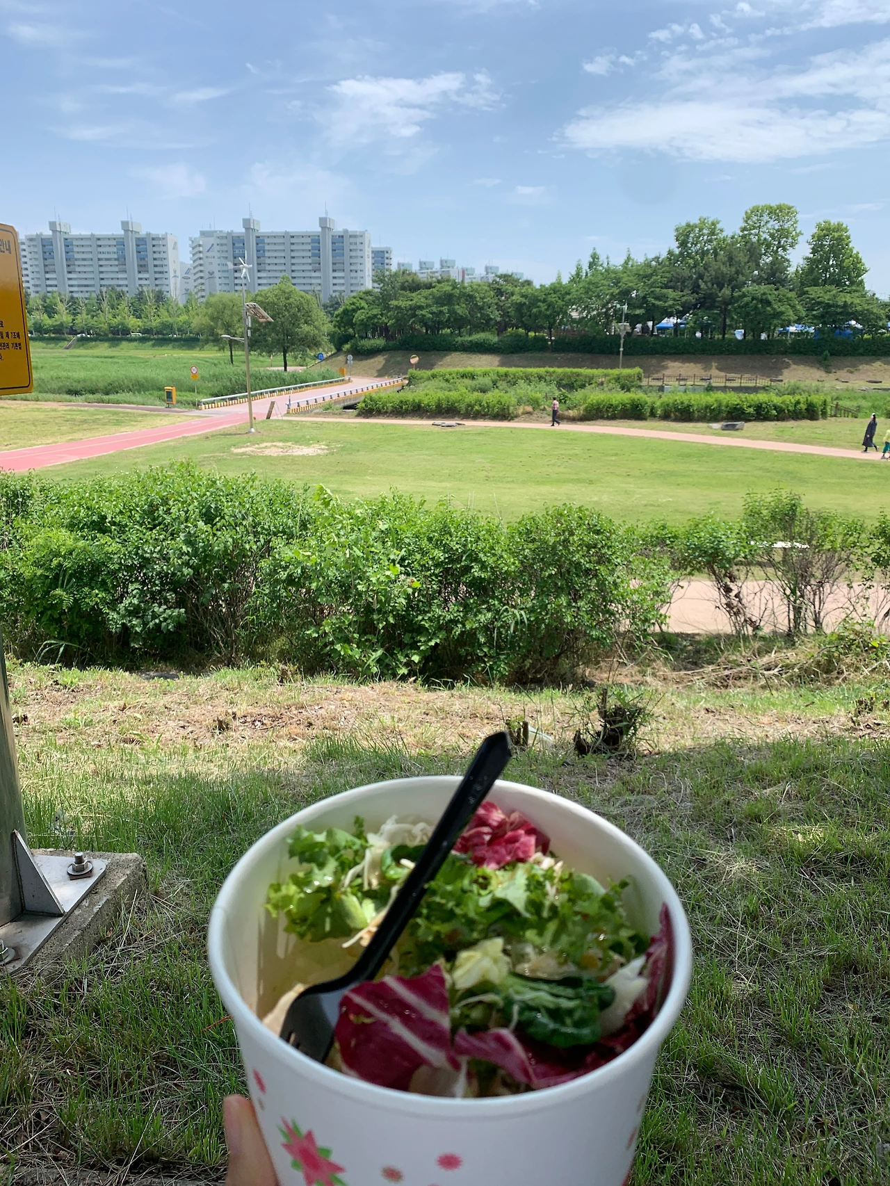 하루에 적어도 1끼는 혼자 먹으려고 했다. 혼자 샐러드를 사서 공원이 한눈에 내려다 보이는 벤치에 앉아, 내가 좋아하는 음악이나 유튜브 영상 하나를 틀어놓고 사람들을 구경하는 시간을 온전히 즐긴다.