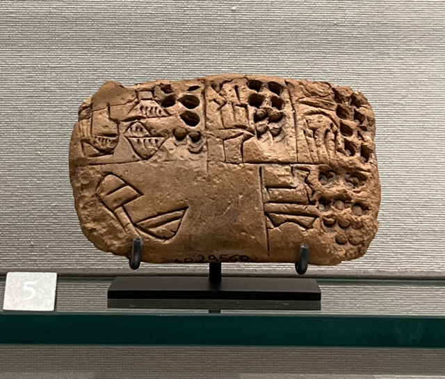 무엇보다 가장 놀라운 것은 기원전 3400년 무렵 수메르인들이 만들어낸 설형문자다. 사물을 그림 형태로 적고 동그라미로 숫자를 표시(pictogramme)하다가 차차 단순화, 추상화시키면서 생각(idéogramme)과 말(phonétisme)이 함께 표현되는 쪽으로 진화한다.