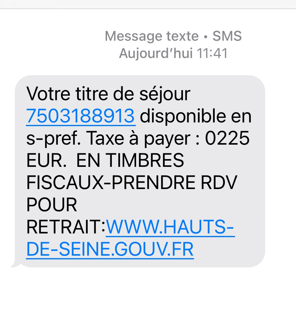 오늘 드디어 정식 체류증이 나왔다는 통보를 받았다. 오전에 휴대전화에 문자가 떴다. "당신 체류증이 나왔으니 225유로 수입 인지를 준비하여 약속을 잡고 찾아가시오."