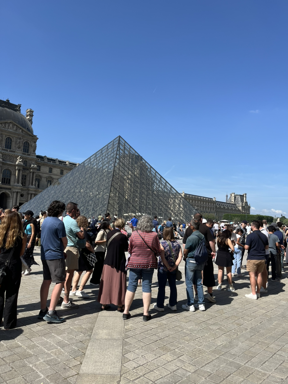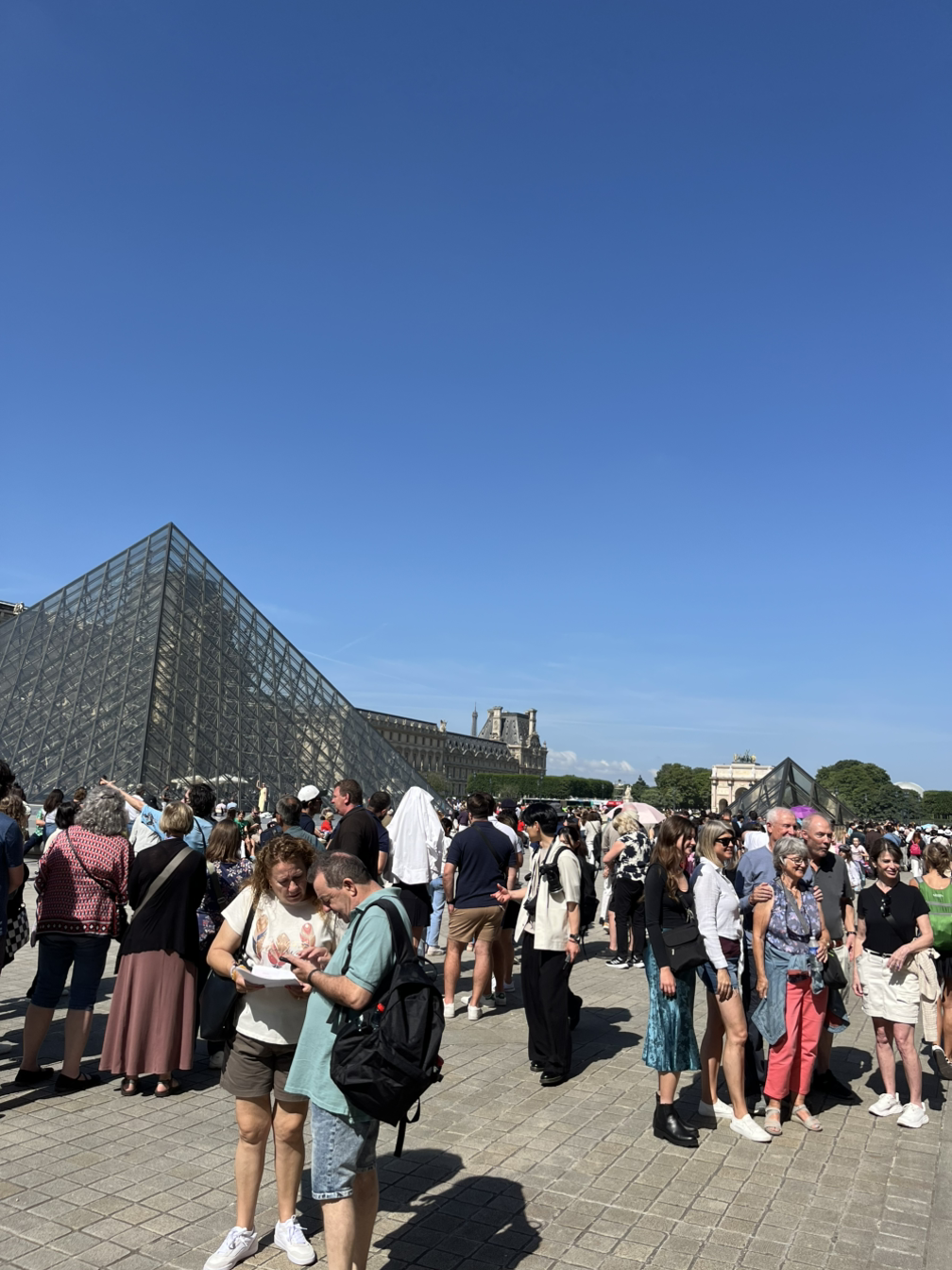 우리가 서려는 파사주쪽 줄은 벌써 백 미터는 더 돼 보였다. 피라미드 입구 줄은 훨씬 더 길게 늘어서 있었다. 금방 모든 줄이 눈덩이처럼 불어났다. 맨 뒤로 가서 자리를 잡으려는데 잰걸음으로 사람들이 앞다투어 뒤따라붙었다.