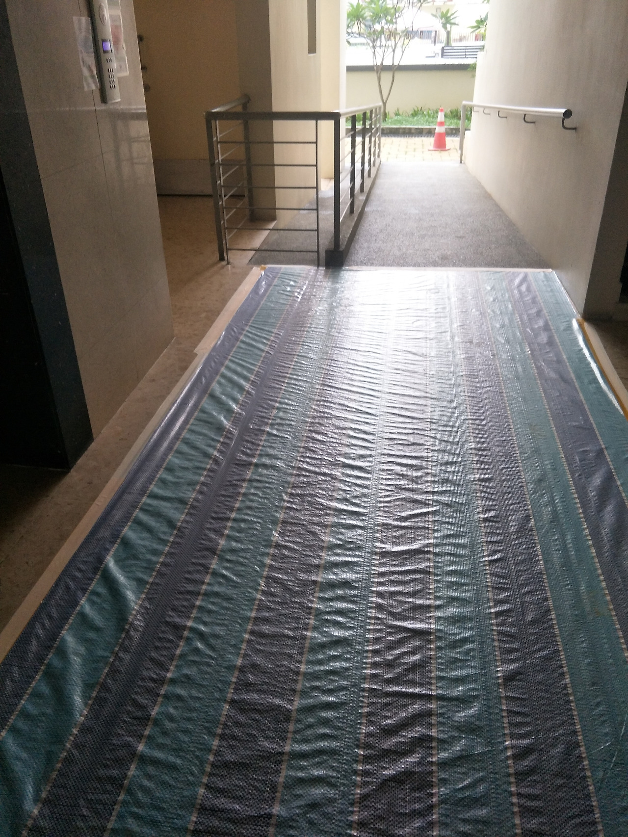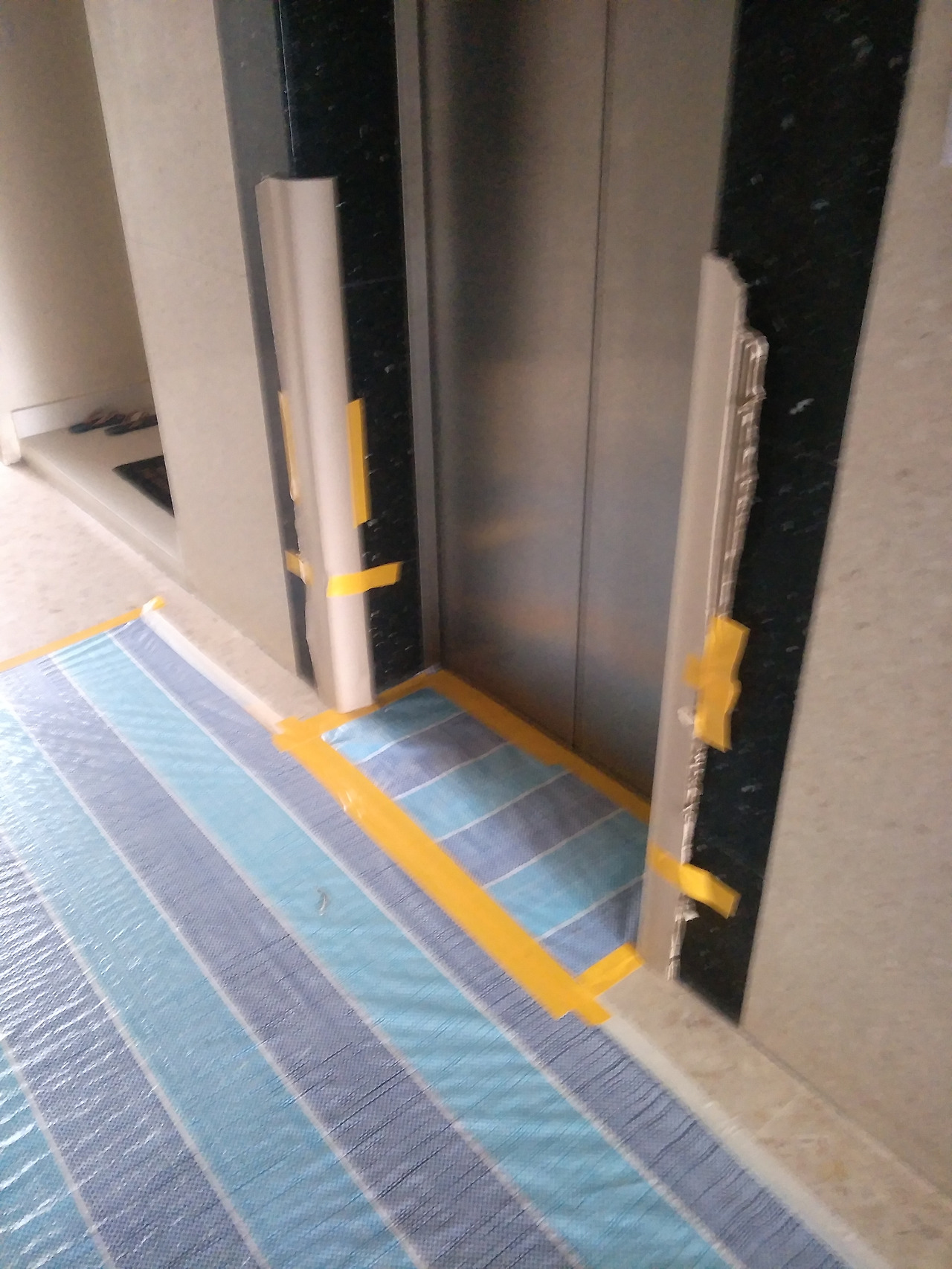 사전에 승인을 받고 이사가 확정되면 아래와 같이 복도(이동경로)나 엘리베이터에 덮개가 씌워진다
