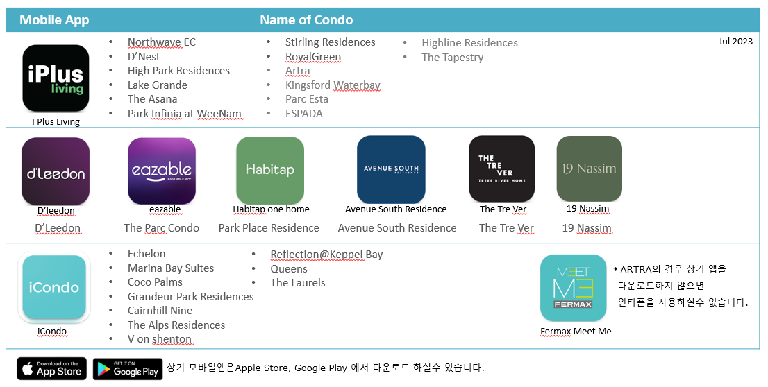 콘도별 설치해야 할 모바일 앱아직 도입이 되지 않은 콘도는 기존대로 해외이삿짐업체에서 미리 신청하고 처리가 가능했으나 일부 앱사용하는 콘도에서는 최근 들어 세입자가 직접 다운로드해서 처리하지 않으면 이사가 어려워질 수 있으니 유의하는 것이 좋다.