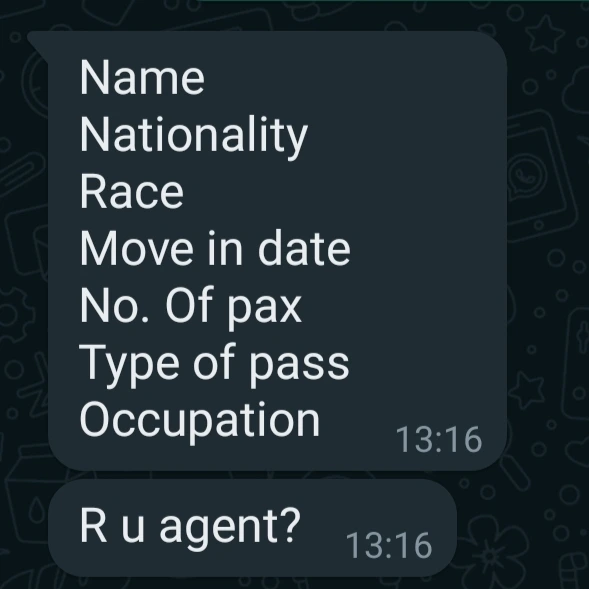 간혹 위의 내용 외에도 Are you agent?(너도 중개인이니)라고 묻는 경우도 있는데 이는 중개수수료가 걸린 문제이기에 확인하는 것이다. 만약 중개인 없이 세입자 본인일 경우 집주인 측 중개인은 수수료가 기존의 2배가 될 수도 있는 문제이기에, 연락한 사람이 중개인일 경우 바로 답이 없는 경우도 종종 있다는 것. 똑같이 일하고 수수료 한 달 치를 받을 수도 있는데 굳이 다른 사람 끼워서 본인 몫을 반으로 깎으려는 사람이 얼마나 되냐는 것이다.