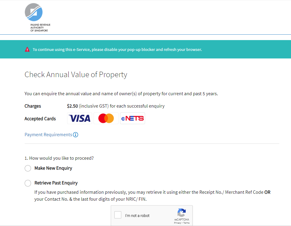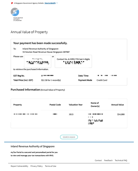 싱가포르의 경우 IRAS의 e-valuation (Ownership/오너십증명)을 아래에서 찾아볼 수 있다(유료/$2.50)