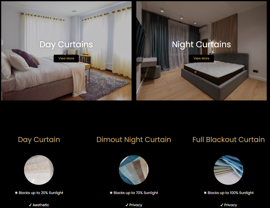 Day curtain: S$14.00/piece, Night curtain: S$14.00/ kg , Blackout curtain: S$14.00/ kg