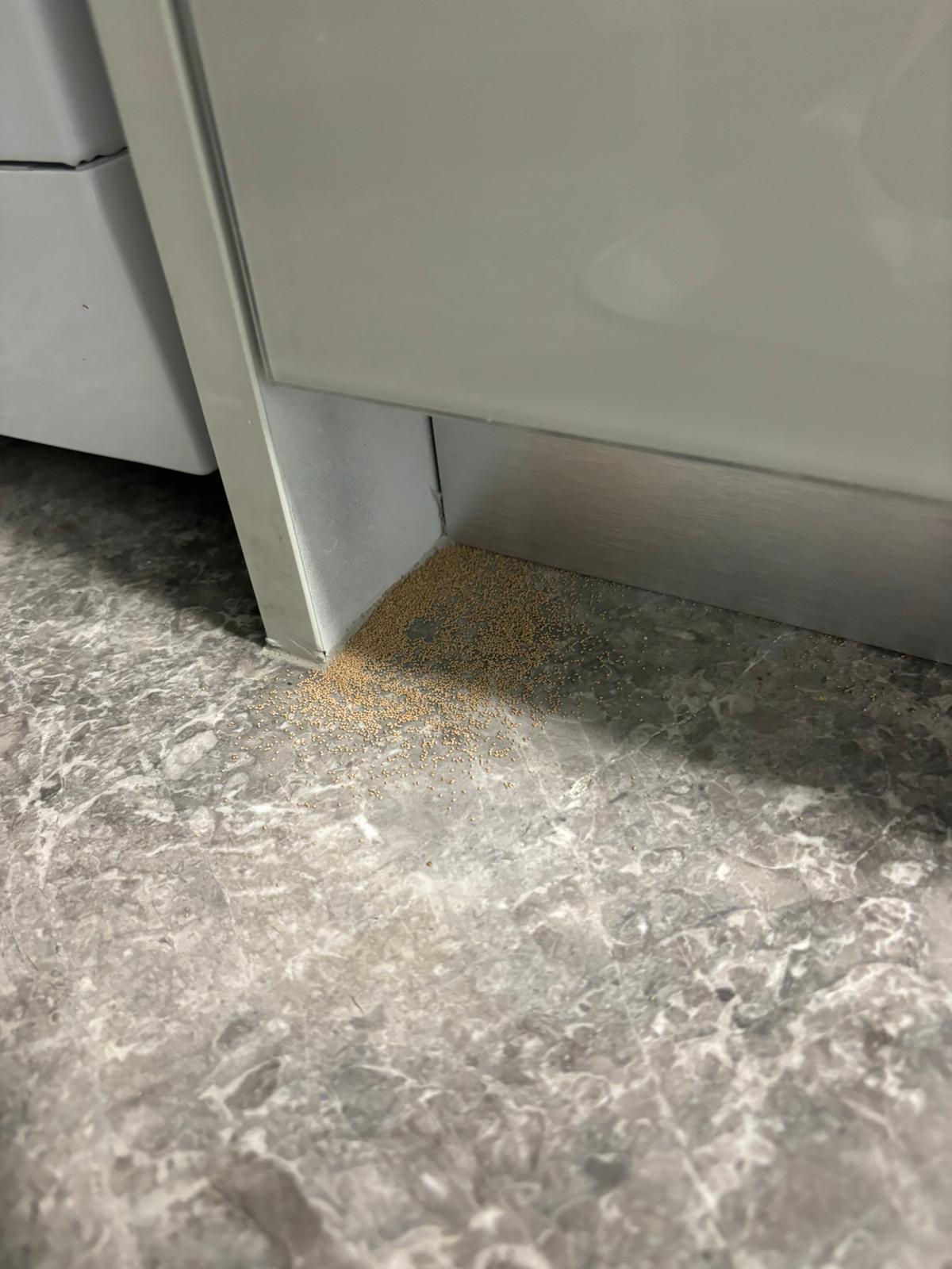 "어제도 분명히 청소했는데.. 오늘 아침에 또 톱밥 같은 게 떨어져 있습니다. 이게 도대체 뭘까요? 혹시 뭔지 아세요?"