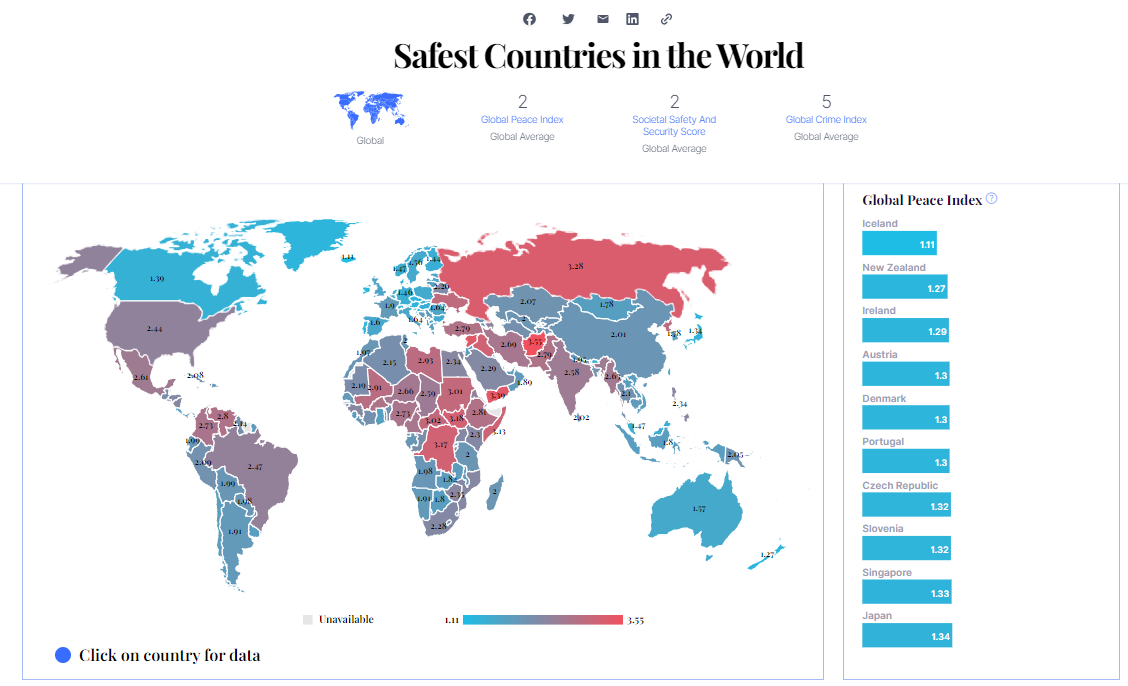 Safest Countries in the World 2023 - Wisevoter 발췌