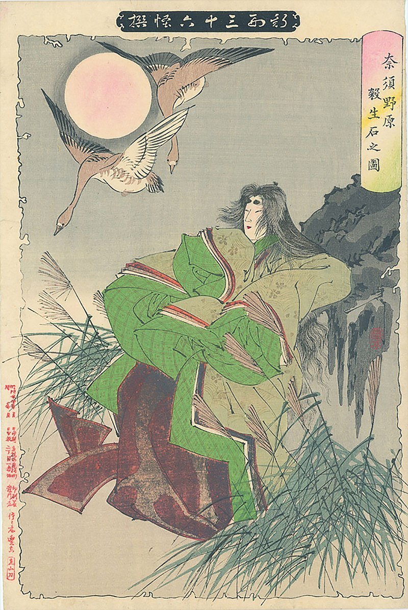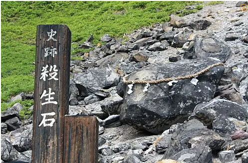 백면금모구미호 전설에 따르면, 달기는 은나라를 멸망시킨 뒤에도 주나라의 포사, 인도 마가다 왕국의 화양부인으로 모습을 바꾸어 나타났고, 마침내 일본에서는 타마모노마에로 변신해 나타난다. 하얀 얼굴과 황금빛 털을 가진 구미호라는 정체가 드러난 뒤엔 10만 대군을 상대로 승리하는 위용까지 보인다. 그러나 결국 백면금모구미호는 군대와의 혈투 끝에 퇴치당하고, 그 시체는 ‘살생석(殺生石)’이 되었다고 한다. 이 이야기 속 살생석은 실제로 도치기현에 존재하는 바위다. 백면금모구미호 전설이 워낙 널리 퍼지고 인기를 끈 나머지, 원래 존재하던 지형물에 이 전설을 덧입혀 상징적인 의미를 부여한 것으로 보인다.