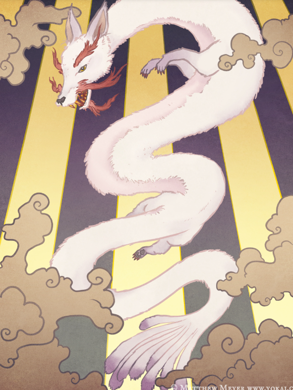 에도시대에 쓰인 쿄쿠테이 바킨(曲亭馬琴)의『남총리견팔견전(南總里見八犬傳)』에는 정목여우(政木狐, 마사키기츠네)라는 선량한 구미호가 등장한다. 정목여우는 자신이 실수로 죽인 여성이 돌보던 아이의 유모 역할을 자청하기도 하고, 찻집을 열어 나그네들을 도우며 공덕을 쌓아 구미호가 되었다고 묘사된다. 그녀는 거기서 멈추지 않고, 무려 천명의 생명을 구하며 ‘호룡(狐龍, 여우용)’으로 승격된다.