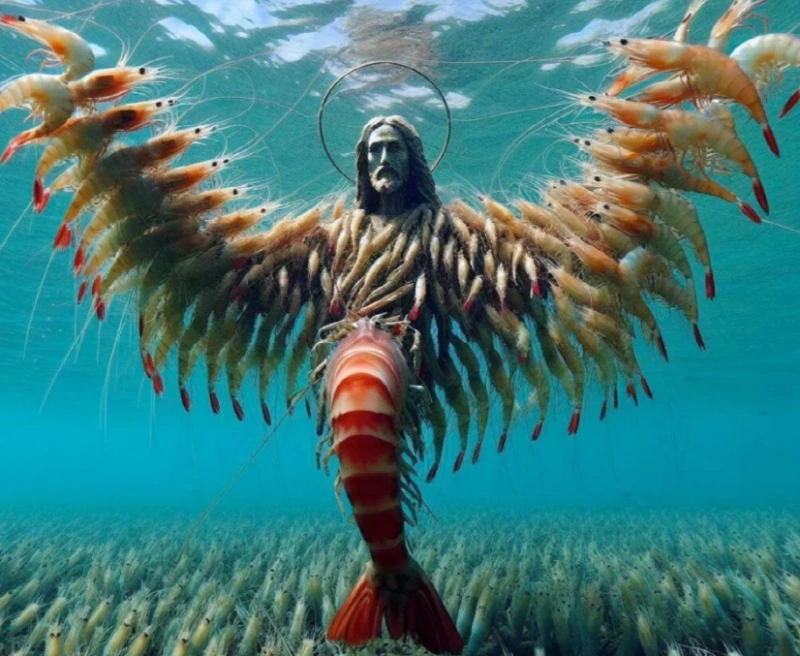 ‘죽은 인터넷 이론’을 대표하는 이미지로 <새우예수>가 있다.