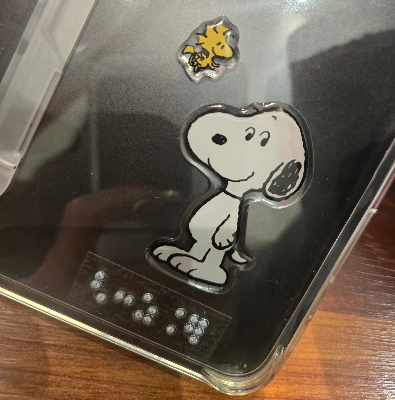 동화책 점자 번역 때 유용하게 썼던 휴대용 점자 인쇄기로 스티커를 부착하고, 내친김에 동행인이 자주 가는 층 정수기에도 붙였다.