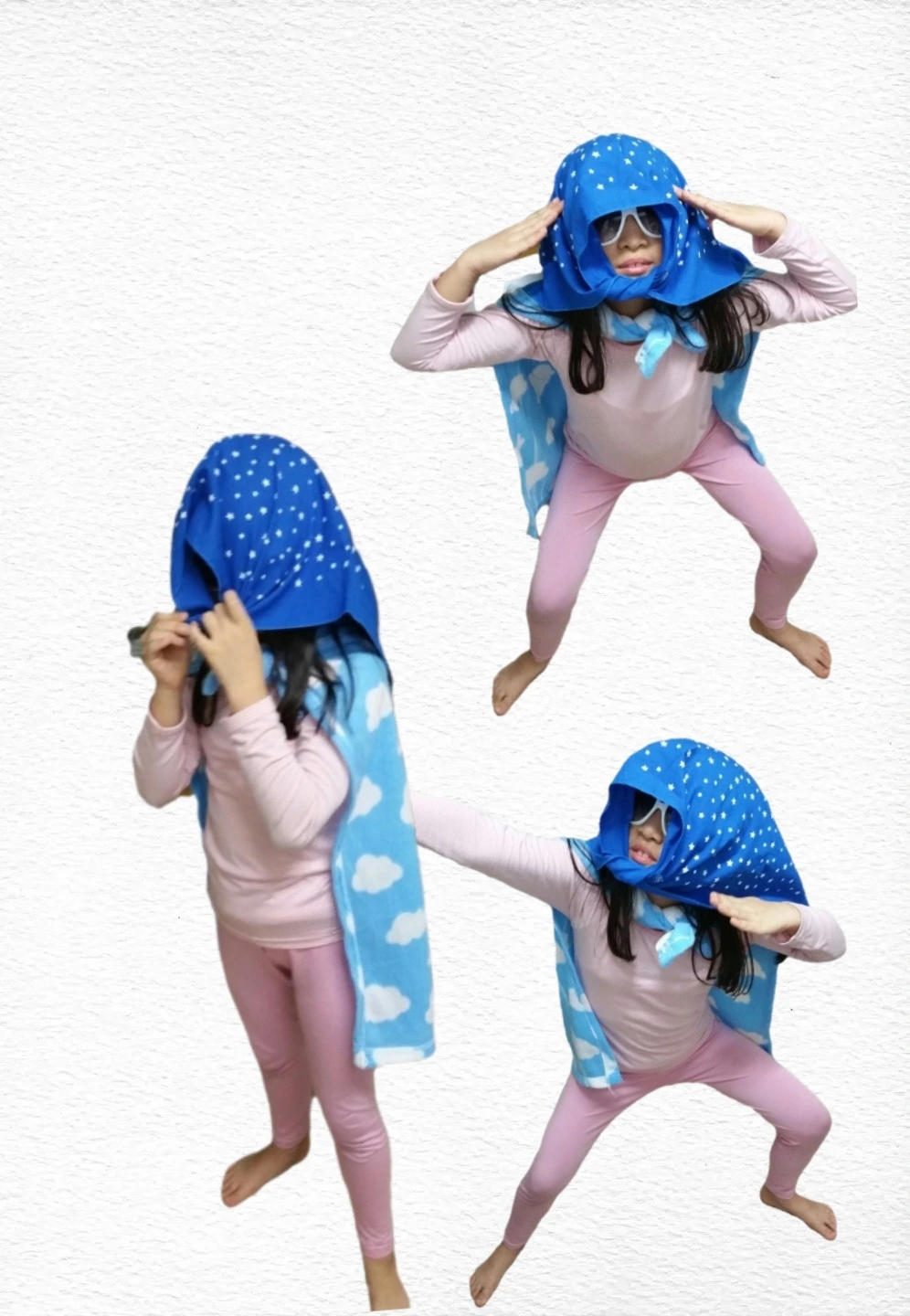 내복차림에 잡다한 소품으로 한껏 꾸민 후,