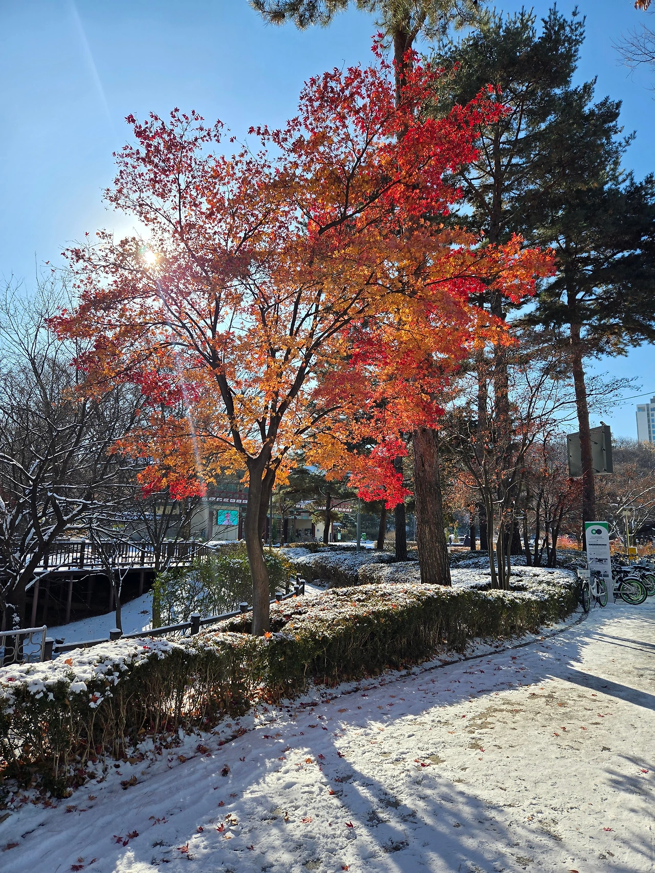꽃과 나무들 역시 하룻밤 사이 뿌려진 하얀 가루에 어찌할 바를 모르고 있다.