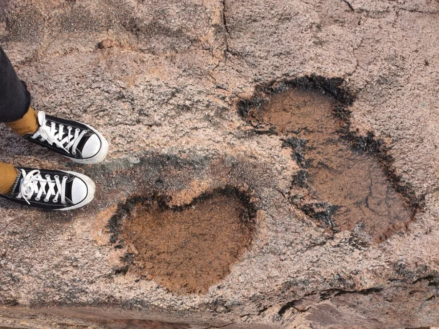 장화라도 벗어 던져둔 듯 재미있는 모양의 돌판이 보인다.