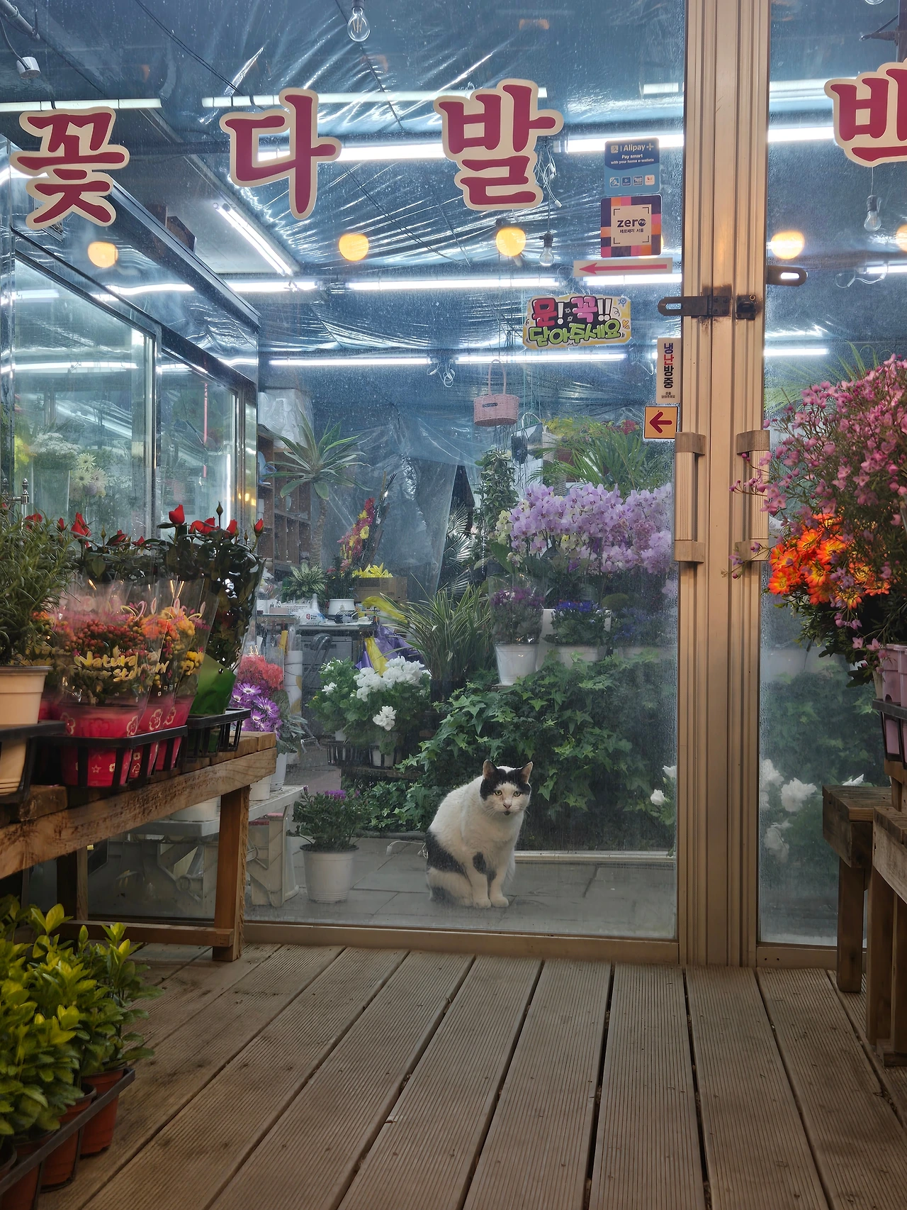 꽃가게 안에는 주인보다 더 쎄한 눈빛으로 바라보던 고양이 한 마리가 있었는데,