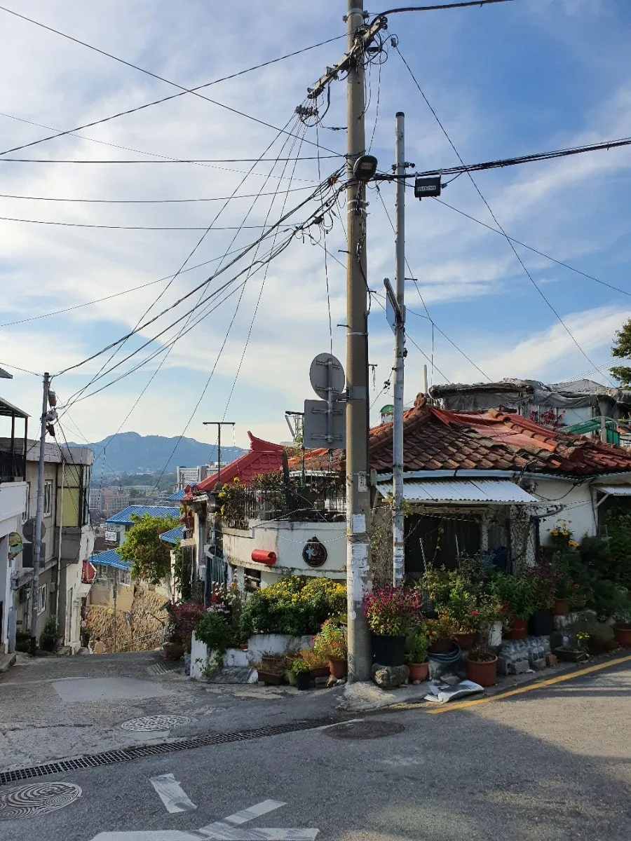 아기자기한 이화동 벽화마을. 지붕도 마당도 집 앞에 놓인 화분 하나까지 저마다의 특징이 있는 집들이 옹기종기 모여 있다.