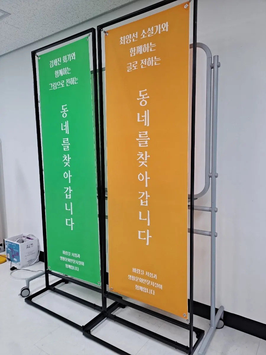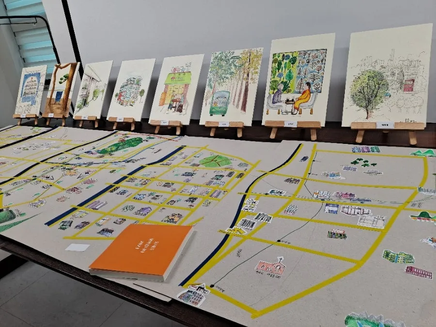 책으로 엮자는 취지의 프로젝트였다. 책은 한국출판문화산업진흥원의 지원을 받아 제작되었고 현재 지역 도서관에 비치중이며 물론 개인소장용으로 받기도 했다. 동네 그리기 프로그램과 함께해 책에는 글과 그림으로 동네를 소개하는 귀염뽀짝한 책이 완성되었다. 마침내 11월 즈음에는 출판 기념전시와 낭독회까지 우리만의 작은 전람회를 열었으니 바람길 사장님의 계획적인(?) 프로젝트는 성공적이라고 말할 수 있겠다.