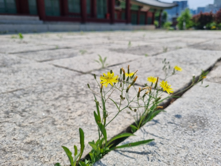 이곳은 조선왕실 출신자들의 처우 등에 대한 사무를 보던 종친부의 핵심시설로 고종 때 왕권 강화책으로 중건되었다고 한다. 경근당 앞 넓게 펼쳐진 월대를 감상하고 있는데 바위틈 사이로 이름 모를 노란 꽃들이 불쑥 고개를 들고 있다. 마치 "저 여기 있어요!" 알아달라는 듯이 한들거리며 먼저 아는 체를 해 온 것이다.
