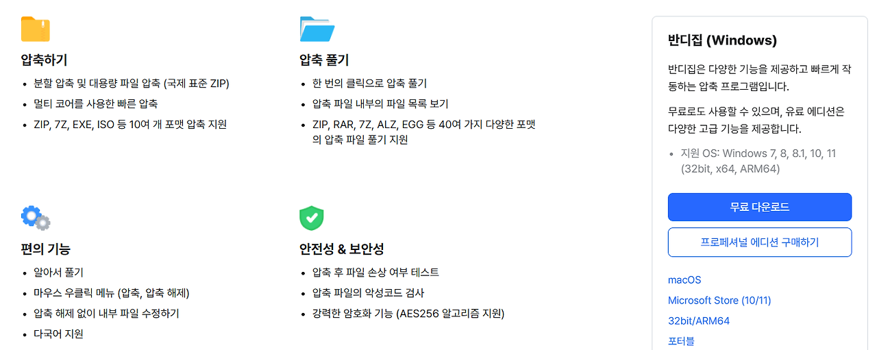 반디집은 무료로 써도 대부분 기능 다 돼요.