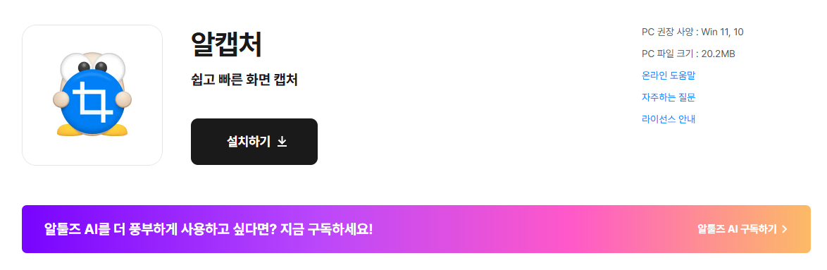 알캡쳐 프로그램 실행