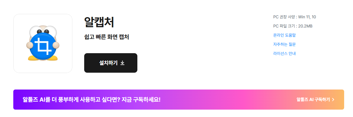 알캡쳐 스크롤캡쳐 및 오류 해결 방법 최신내용