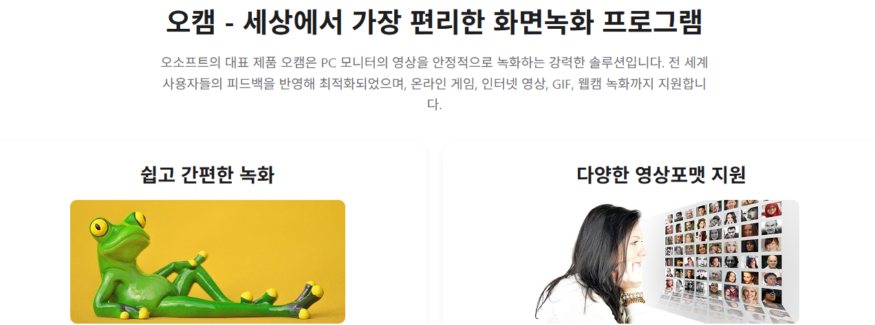 ohsoft.net 접속하시면 오캠 말고도 오훈, 오클립 같은 다른 프로그램도 있어요. oCam 메뉴 찾아서 다운로드 페이지로 들어가세요.