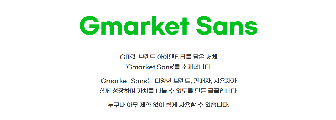 G마켓에서 브랜드 아이덴티티용으로 만든 전용 폰트를 무료로 풀었어요. 산세리프 계열이라 깔끔하면서도 개성 있습니다.