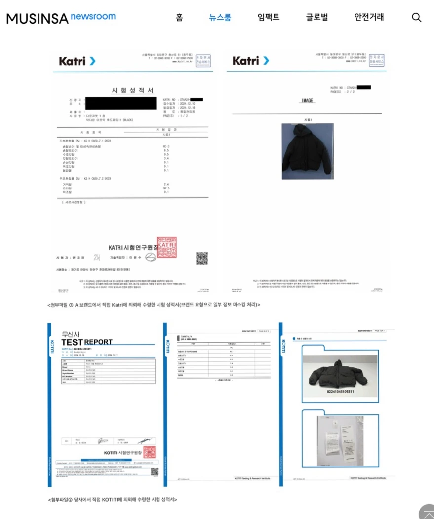 실제로는 오리털, 솜 등 저가 재료를 사용했다는 사실이 밝혀졌고,