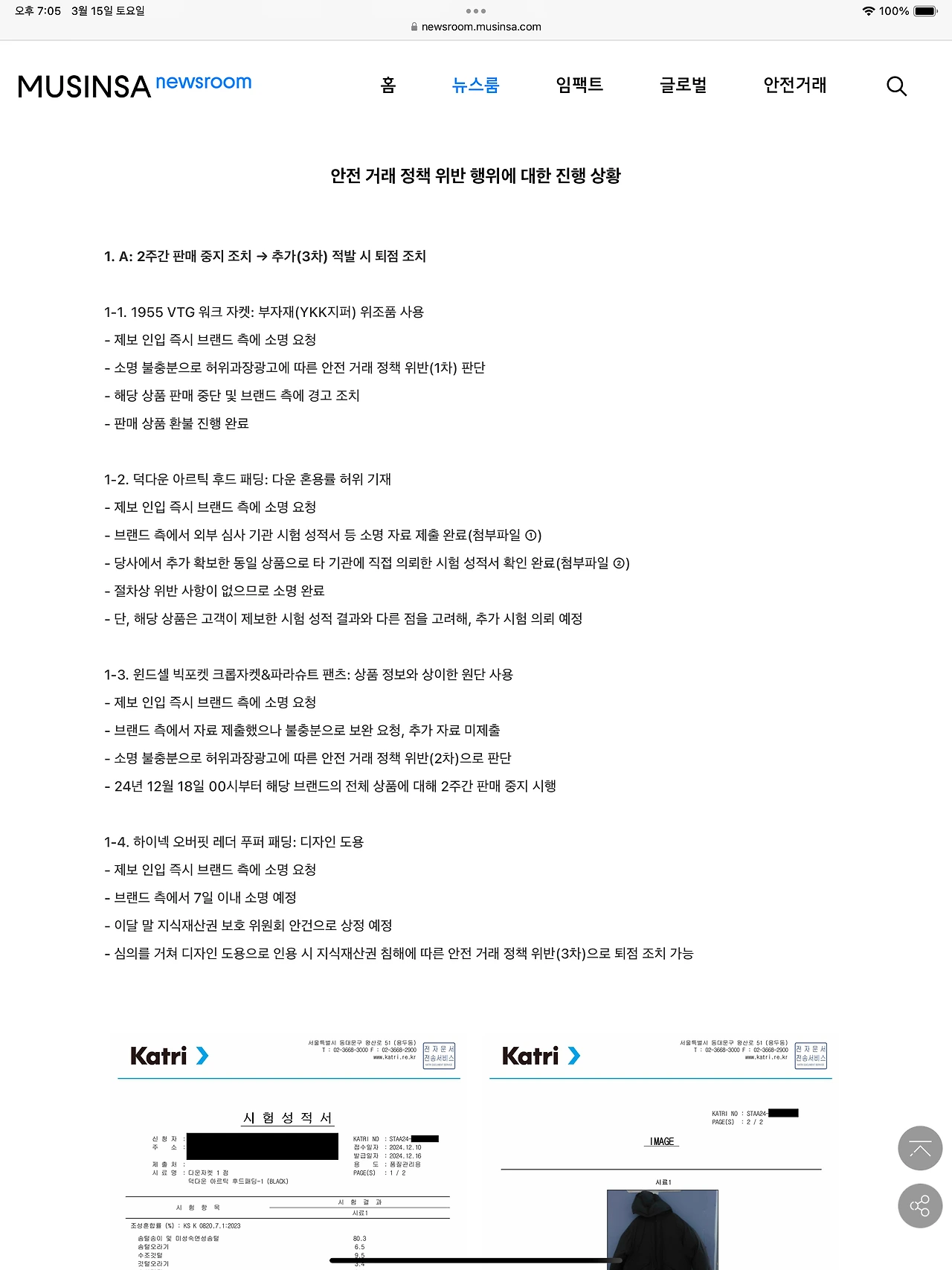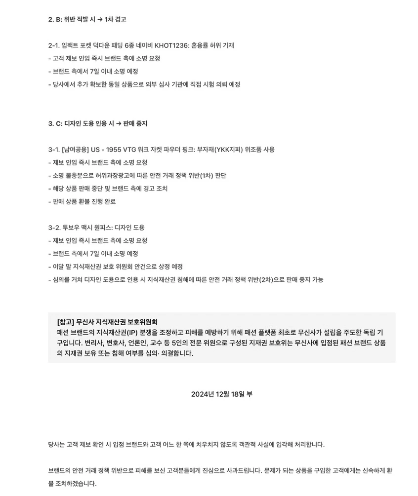 * 투명한 공지: 위조품으로 확인된 경우, 플랫폼 내 공지를 통해 해당 정보를 투명하게 공개