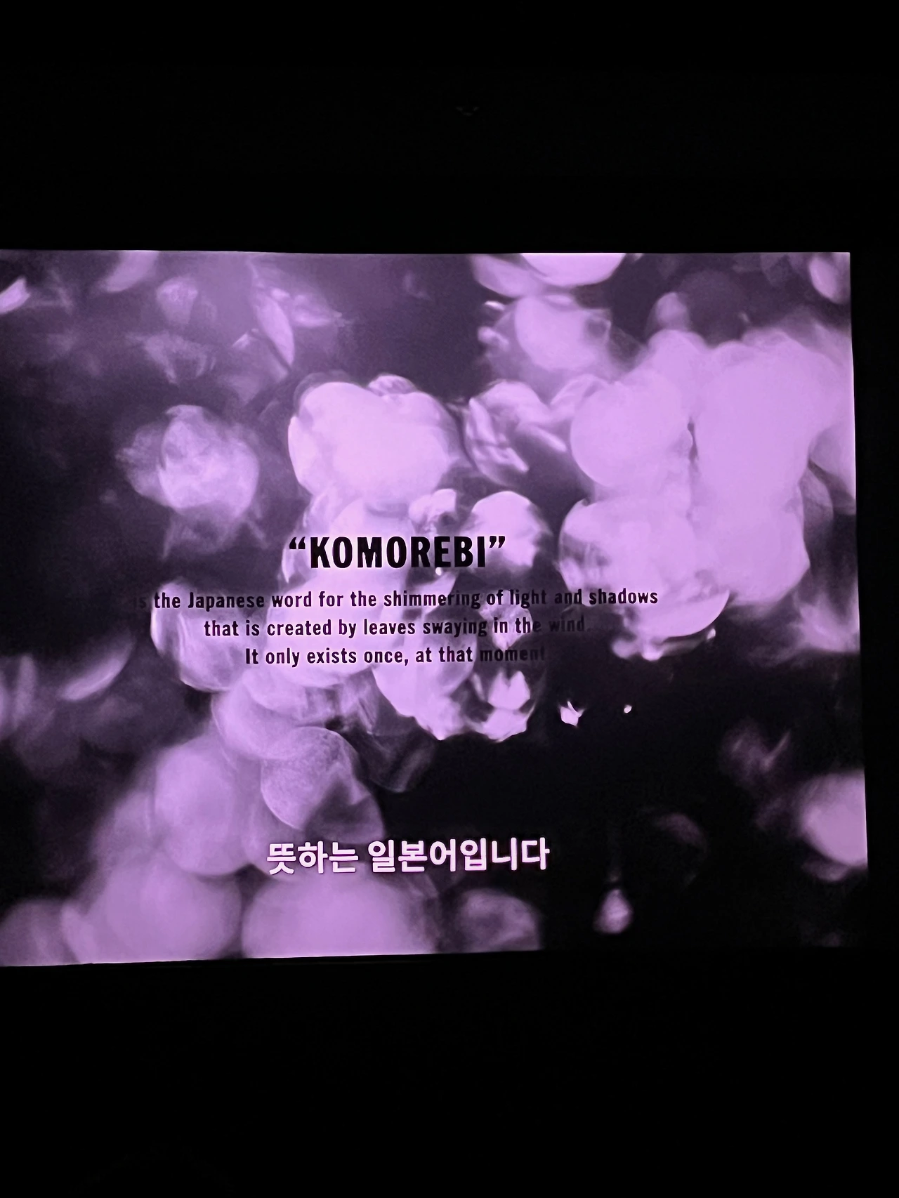 영화에서 주인공이 매일 차를 타고 듣는 카세트테이프의 음악들, 정갈에게 집에 놓여있는 책들을 보면 서툴지만 자신이 좋아하는 걸 꾸준히 쌓고 계속 발전시킨 시간이 보인다. 그걸 이해하지 못하는 다른 동료는 그걸 단순히 돈으로 보고 빈티지샵에 팔아버리지만, 그건 단순히 환가 할 수 있는 테이프 중 하나로 두기에는 너무나도 귀한 주인공의 세월이다. 주인공이 매일 찍는 코모레비(나뭇잎 사이로 비치는 햇살)도 왜 사진을 저렇게 찍을까 라는 생각이 들면서도 꾸준하게 코모레비를 쌓아가는 그 시간이 대단해 보인다. 꿈에서 자주 마주하는 어두운 이미지, 사연이 있어 보이는 가정환경을 그렇게 코모레비로 풀어내는 것이 아닌가 하는 추측을 곁들이며..