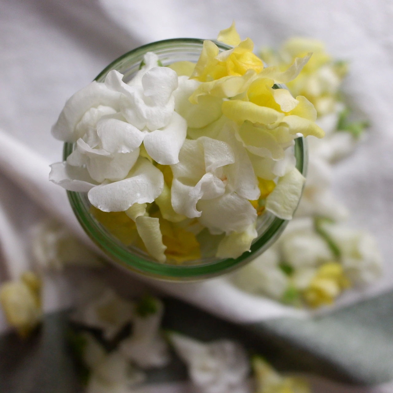 꽃잎들 절반의 연초록 꽃망울.