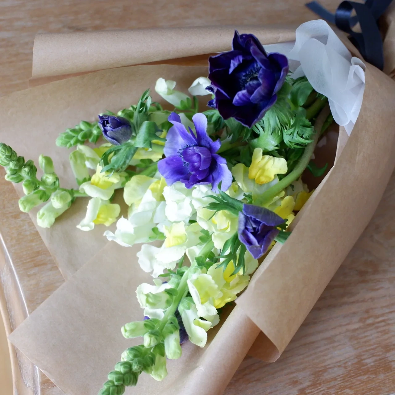 청보라 아네모네에 다섯 대 잘라 함께 넣어 주니