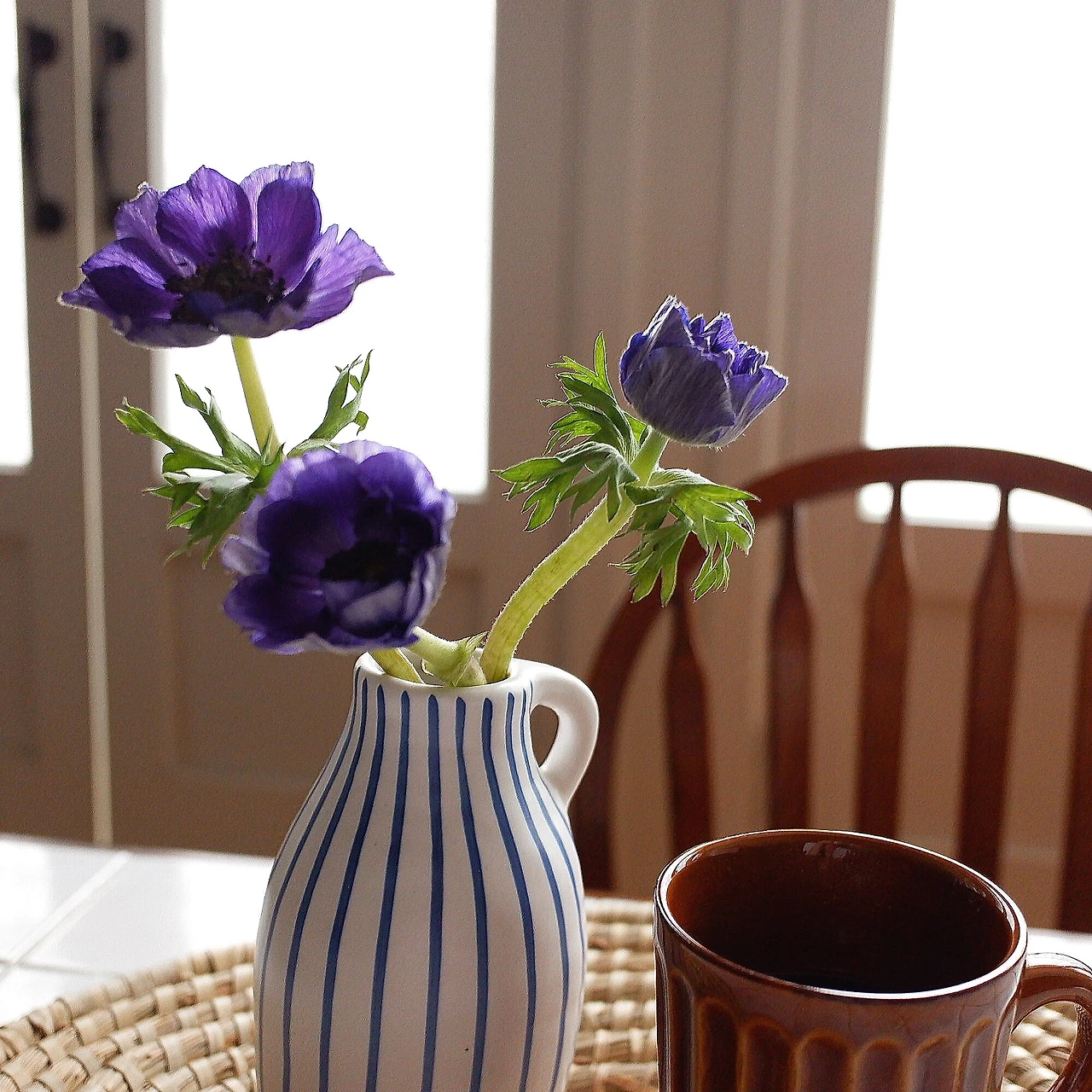 안 되는 방에 두었던 아네모네를